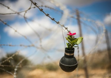 A flower rooted in resistance. This picture tells a story of Palestine’s strength, where every thorn and barrier gives birth to hope.