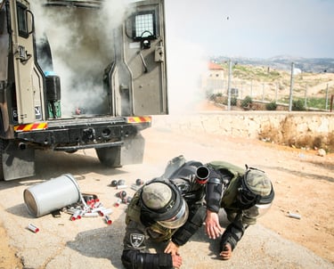 The raw reality of Palestine, where even armored might falters, and the smoke of oppression cannot silence the truth.